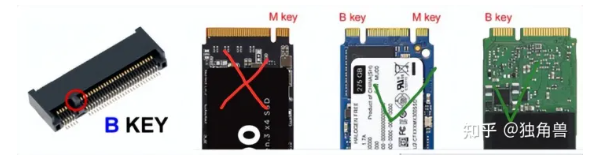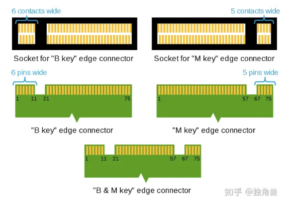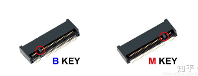 B key 的防呆键位于插槽的左方,M key 则在右方。两种类型的插槽其短边接脚数量有所差异
