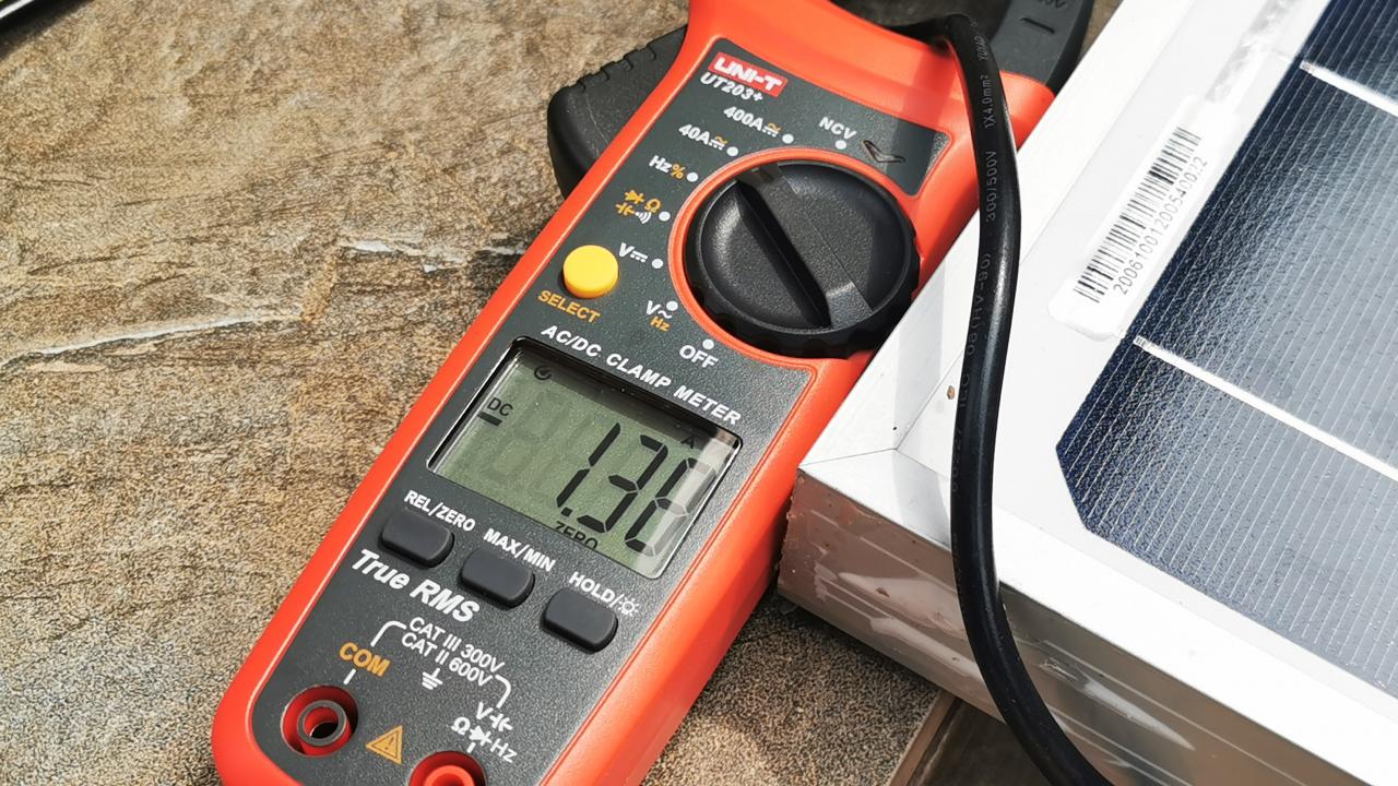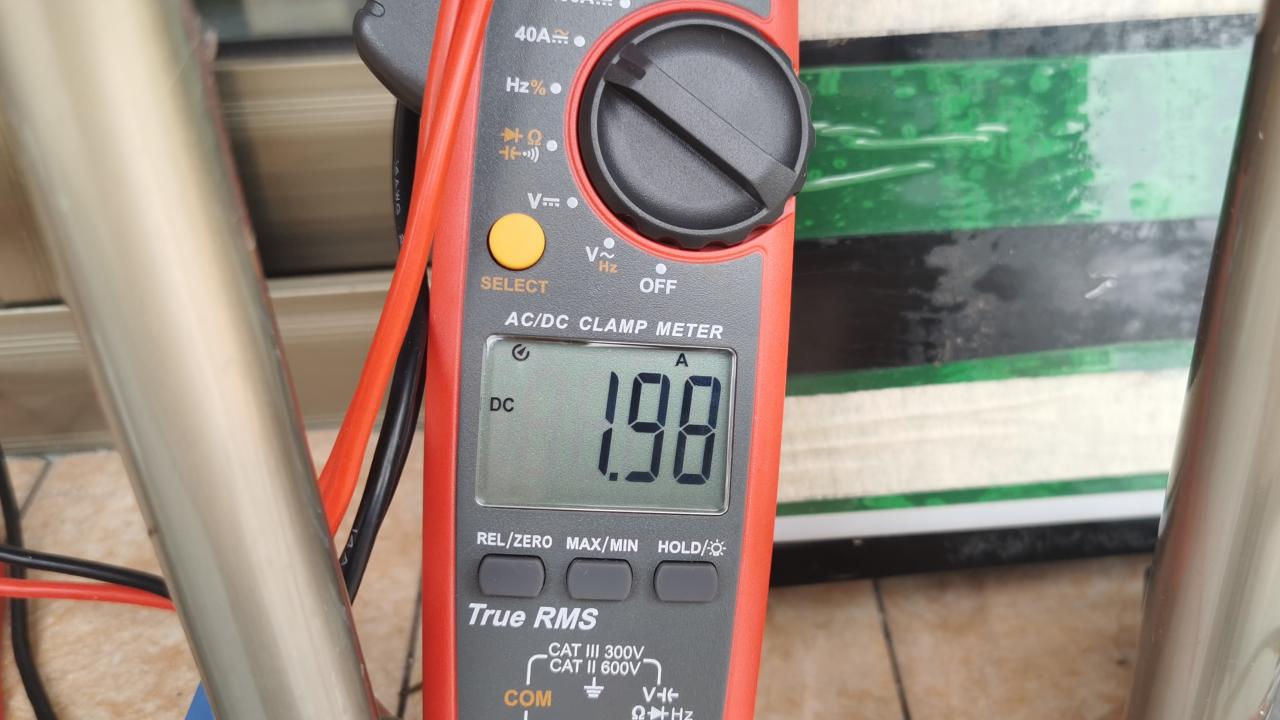 光伏板端:电流随阳光不断变化,捕捉最大1.38A