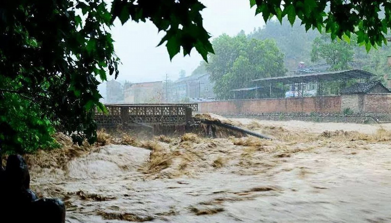 后来才知道,这条河的上游20公里,有一个镇,叫做金顶镇,31日上午,一小时降雨量就接近100毫米,堪称特大暴雨。洪水冲垮了金顶镇境内的一个围堰,一路狂奔,直冲下来,直逼木匠冲村的安石桥。洪水之所及,一片狼藉。上游大部分土坯的平房,早已坍塌成横七竖八的一滩烂泥。木质的椽子、家具,塑料的水桶、盆子,村民撤离时来不及带走的箱子、衣服、被子……漂浮在水面上,随着洪水,像一大群巨型的的苍蝇,在安石桥下,东一下、西一下的乱撞。