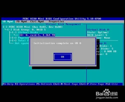 12、初始化完成,点击:OK,完成创建raid,如图所示: