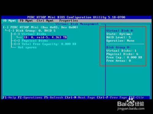 9、在VD Mgmt界面就能看到已经创建好的raid5,总的大小4.364TB。如图所示: