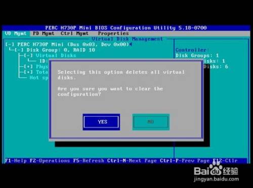 15、弹出确认删除的对话框,点击:YES,表示确认删除raid。如图所示:
